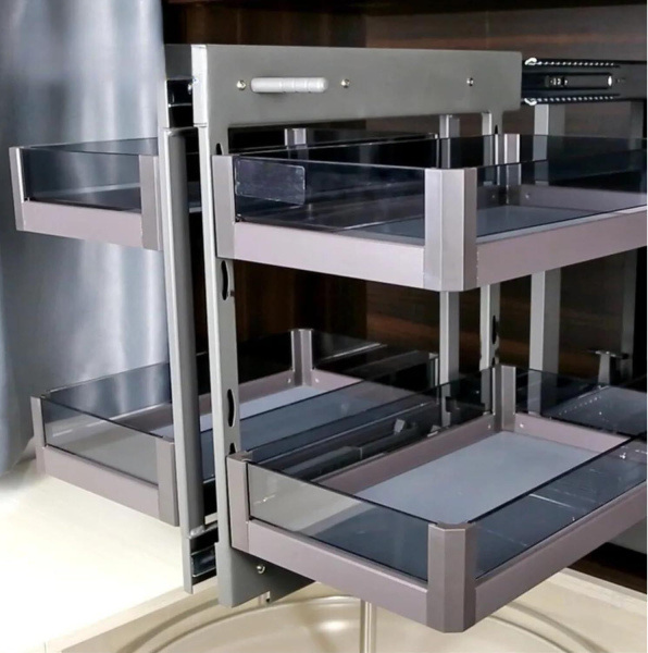 SYSTEME COULISSANT D'ANGLE MAGIC BASKET VERRE/ALU 4 PANIERS