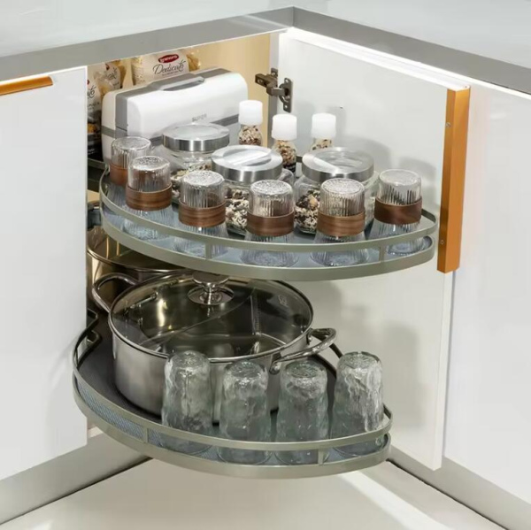RANGEMENT D'ANGLE CHROME/GRIS DROITE 950MM