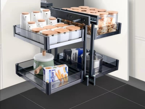 SYSTEME COULISSANT D'ANGLE MAGIC BASKET VERRE/ALU 4 PANIERS