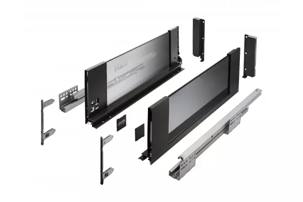 SYSTEME DE TIROIRS AMORTIE A PAROIS FINE GLASS NOIR